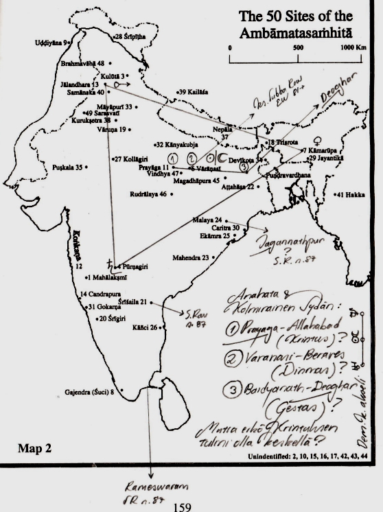 If that is so, the Skull Hill where the crosses are erected is beheld as if from Purnagiri (sounds about right, since that too bears the same name, in a way, being the Black Mountain of mortification), namely, conveniently just like it seems from our present time use of maps, where East is at the right side. Do you think that this is also how one should place personal Varanasi & Baidyanath at the local map: as seen from the south side, Purnagiri?